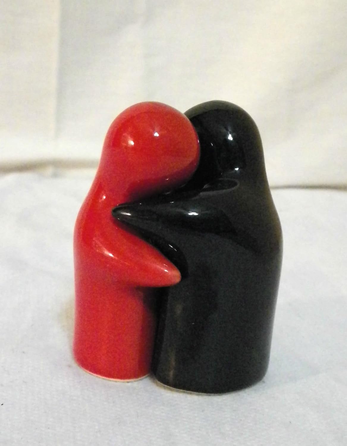 Amazon Com Kitchen Black Red Embracing Hugging Ceramic Salt Pepper Shakers Set Decor Kitchen Dining