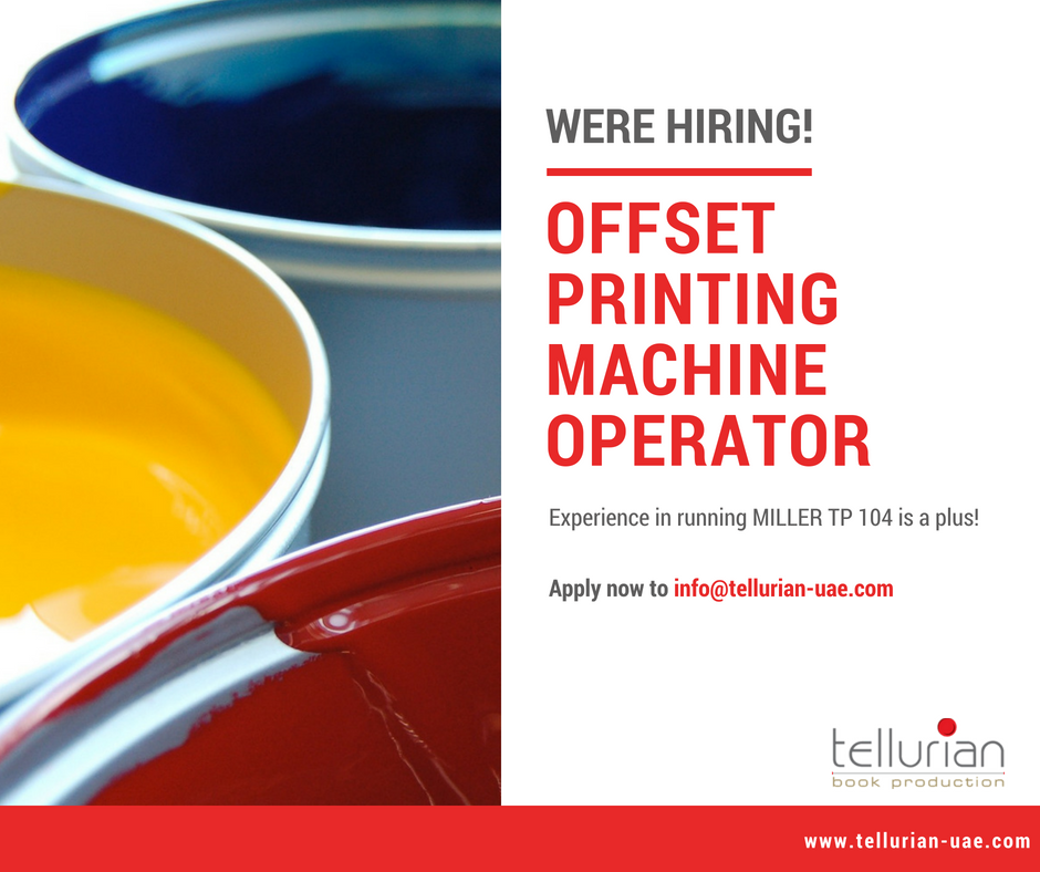Tlr Diaries Pa Twitter Tellurian Based In Dubai Uae Is Looking For A Offset Printing Machine Operator For Our Printing Press The Candidate Must Be Fluent In English Experienced In Running Any
